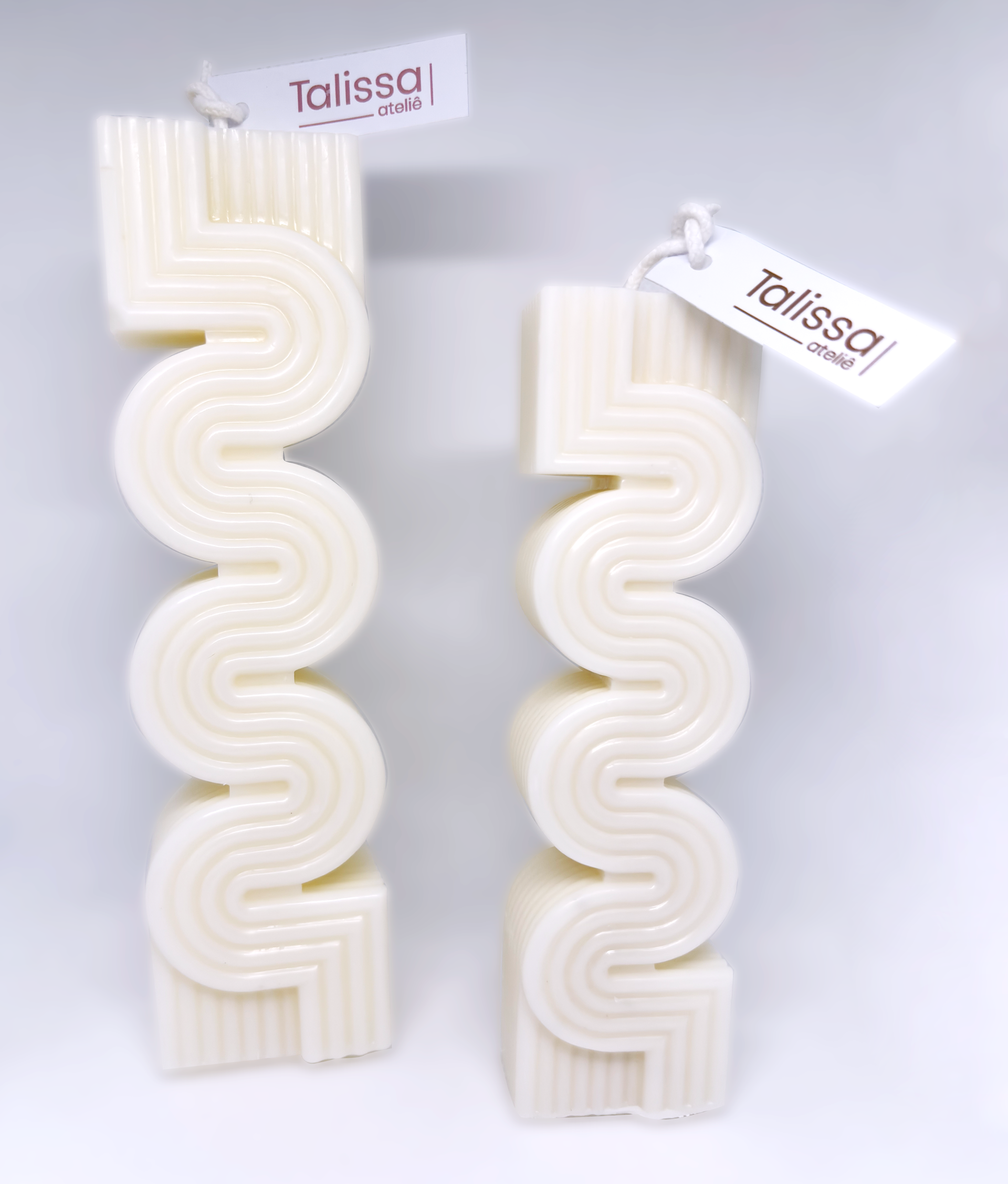 A Vela Vibe, com seu formato geométrico ondulado, se destaca não apenas pela estética, mas também pela funcionalidade. Seu design não é apenas visualmente agradável, mas cria uma atmosfera acolhedora e relaxante. O seu kit compõe uma vela de grande de 145g e uma vela menor de 100g .Elas são feitas com cera ecomix e um blend fragrâncias premium exclusivas e autorais.